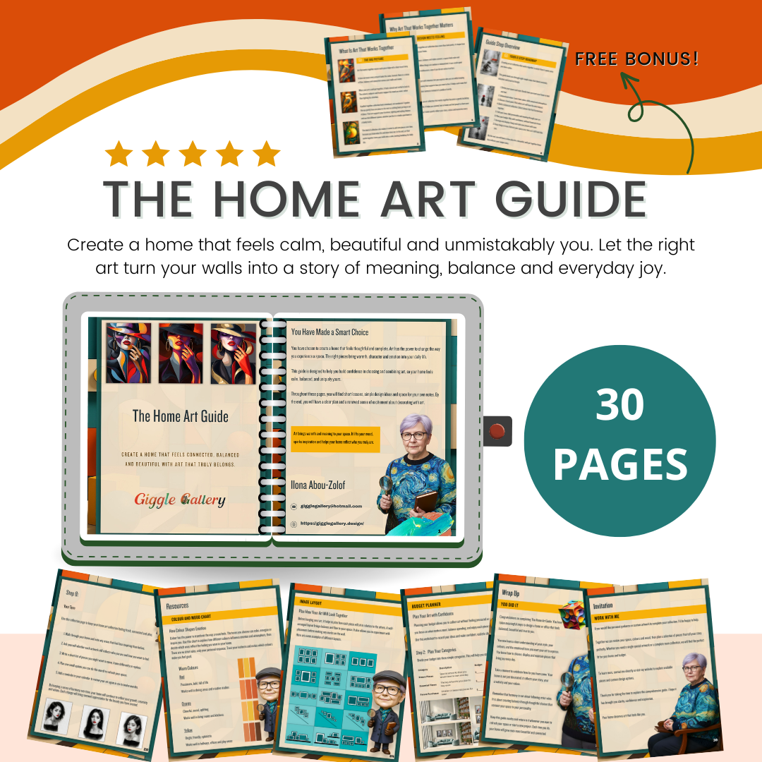 Inside the 30-page Home Art Guide, I walk you through simple, practical steps to choose art with confidence and create a space that reflects your personality and style.